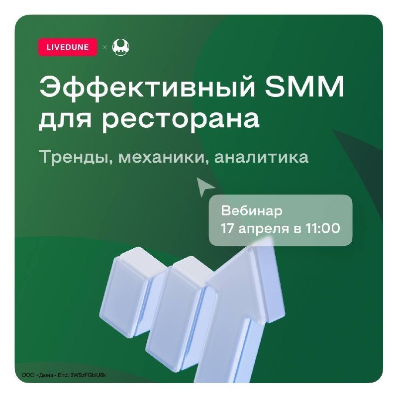Как вы понимаете, построить идеальный ресторан, собрать команду мечты, найти гениального шефа, составить фантастическое меню и закупить лучшие продукты – это еще полдела. Надо правильно о своем прекрасном ресторане рассказать всем вокруг. И как это сделать, расскажут на бесплатном вебинаре «Эффективный SMM для ресторана: тренды, механики, аналитика» от LiveDune. Светлана Соколова, соучредитель brandformance агентства MYGRIBS, спикер и автор курсов школы ресторанного менеджмента и сервиса Novikov Space и Наталия Туйгунова, медиаэксперт и амбассадор сервиса аналитики LiveDune расскажут: Какие соцсети и форматы эффективны в HoReCa И почему одни работают, а другие – нет. Как сформировать контент-стратегию для соцсетей, которая будет работать на цели бизнеса, а не только на лайки. Как спланировать бюджет на продвижение ресторана и на какие SMM-показатели ориентироваться в «сфере». В общем, бездна полезной информации для ресторанного SMM и PR! 17 апреля в 11:00. Регистрируйтесь по ссылке: