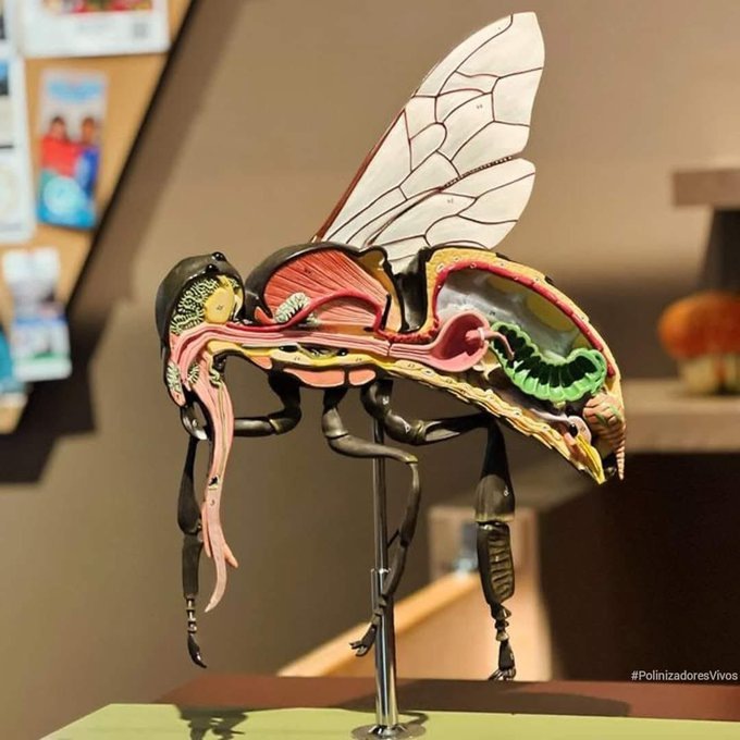 Визуализация анатомии пчелы. У медоносных пчел 170 обонятельных рецепторов, они помогают насекомым различать сотни цветочных сортов и безошибочно определять, есть ли в цветке нектар. Обоняние пчел в десятки раз сильнее, чем у собак. Улавливают запахи пчелы с помощью усиков-антенн, на которых расположены микроскопические обонятельные сенсиллы. Чем больше сенсилл, тем лучше обоняние. У пчел их до 6000. А еще у пчел два желудка – один для собственного питания, а второй (медовый зобик) – для хранения нектара и переработки его в мед.