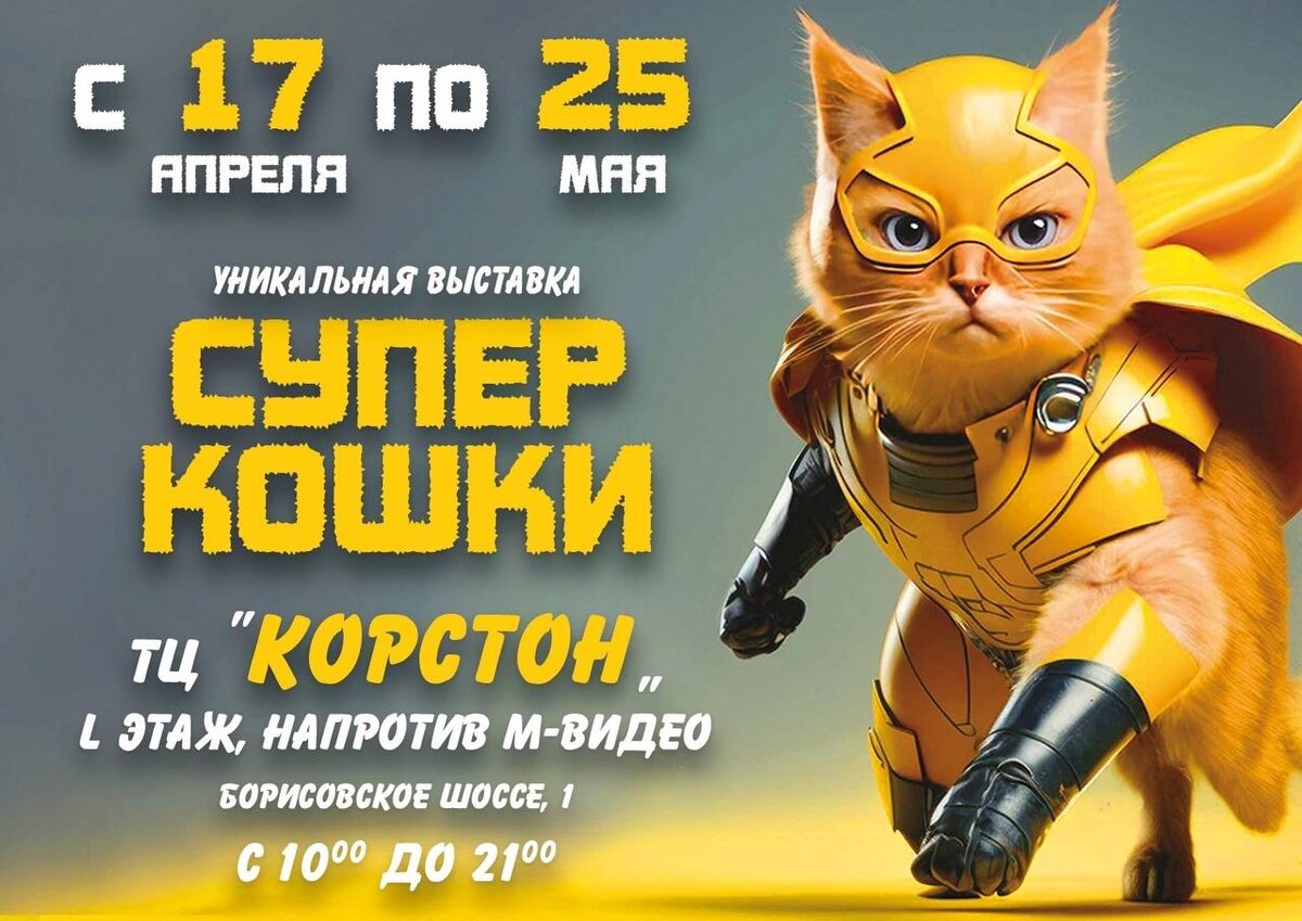 Готовы ли вы к самой пушистой и выставке этой весны? «Супер кошки» открывают свою тайную штаб-квартиру в ТЦ «КОРСТОН»!💥 с 17 апреля по 25 мая хвостатые герои готовы спасти ваш день и поднять настроение!😻 У нас представлено множество пород кошек, каждая из которых обладает своими уникальными суперспособностями которые они с радостью продемонстрируют в своих интерактивных зонах для игр.😸 Приходите всей семьёй и окунитесь в невероятные приключения на выставке «Супер Кошки»!🐈⬛ 📍 г.Серпухов С 17 апреля по 25 мая ТЦ «КОРСТОН», этаж L, (Напротив М-Видео), Борисовское шоссе, 1 10:00 - 21:00