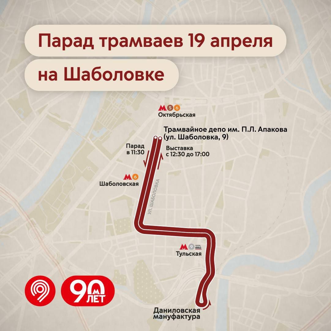 🚃 19 апреля в Москве пройдет парад трамваев Он приурочен к 126-летию Московского транспорта. Колонна исторических вагонов проедет от улицы Шаболовка до Даниловской мануфактуры и обратно. Парад начнется в 11:30. С 12:30 до 17:00 в трамвайном депо имени П.Л. Апакова пройдет выставка ретровагонов. Канал 👉 Знаешь ли ты, Москва❓