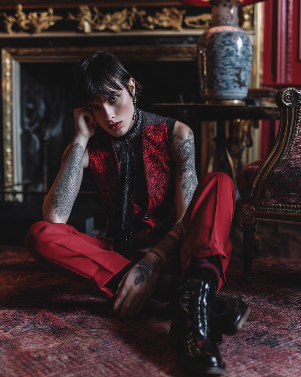 Создано на основе запроса: muscular GothPunk Nibiru haute couture editorial photoshoot, elegant but quirky, simplistic hypermaximalism