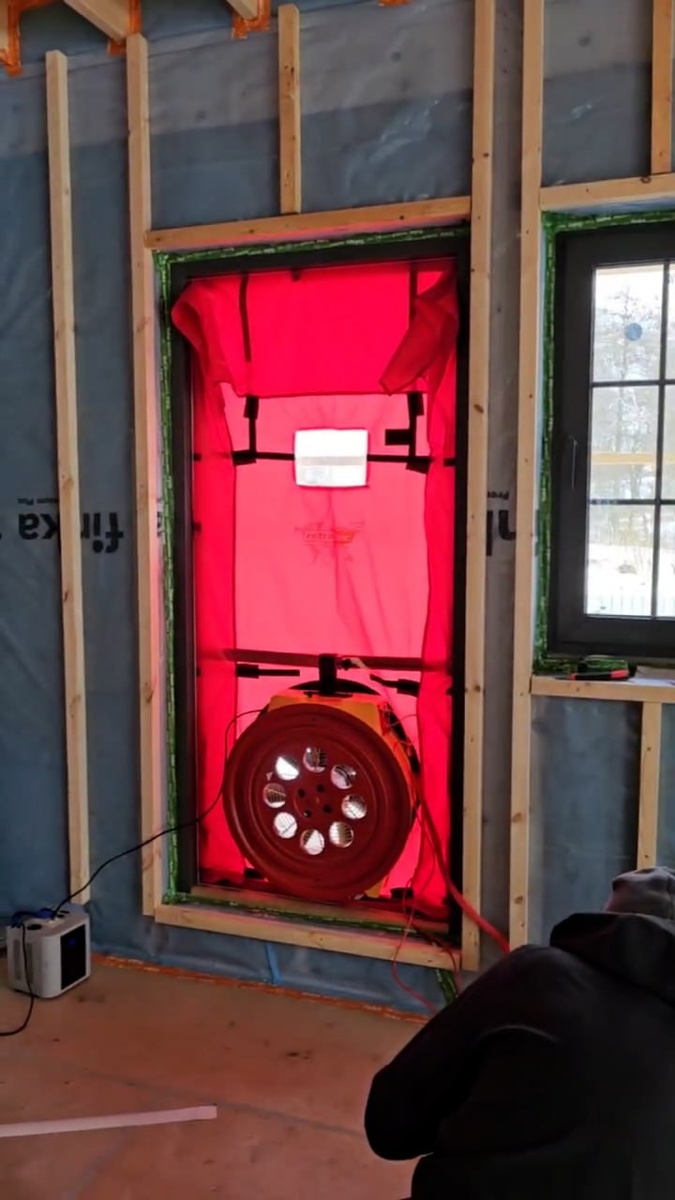 Проверка теплого контура и герметичности пароизоляции! На одном из объектов в Московской области мы провели проверку теплого контура и герметичности пароизоляции с помощью аэродвери. 🔹 Первые замеры показали кратность воздухообмена n50 = 1,30. 🔹 С помощью тепловизора мы выявили проблемные зоны: негерметичные участки пароизоляции и мостики холода. 🔹 После устранения всех недочетов итоговый показатель составил 0,88 – отличный результат для двухэтажного дома! Теперь в доме – максимально комфортный микроклимат, снижены теплопотери и повышена энергоэффективность.🏡❄️🔥