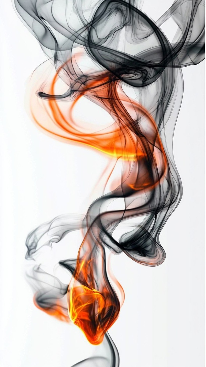 Создано на основе запроса: A smoke art with an abstract representation of fire, featuring flowing and dynamic shapes in shades of grey