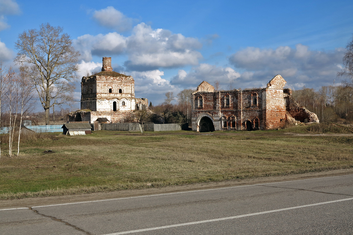 Первое. Подъезжая к поселку Слобода, издалека видишь руины старинного Антониева Краснохолмского монастыря. Разрушенные постройки останавливают внимание своей монументальностью. В центре высятся три уцелевших стены огромного Никольского храма, напоминающего величественные соборы Московского Кремля. На стенах - остатки росписи! И это здесь, вдали от больших городов, на берегу небольшой речки Могочи - и такой собор!