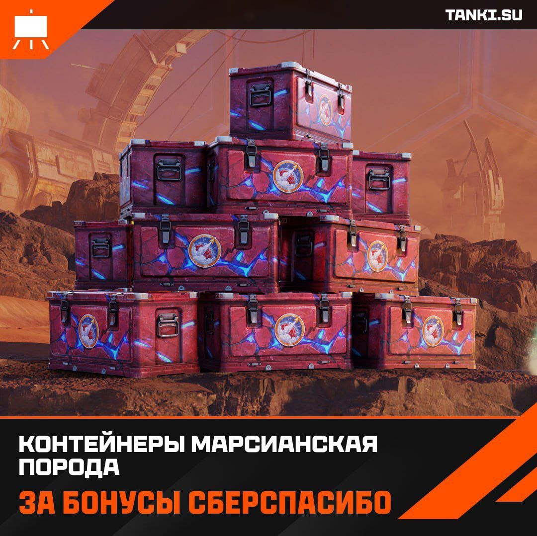 👍Свежие поступления за бонусы СберСпасибо! За бонусы программы «СберСпасибо» в России теперь можно приобрести купоны с различным игровым имуществом «Мира танков», в том числе к̲о̲н̲т̲е̲й̲н̲е̲р̲а̲м̲и̲ ̲«̲М̲а̲р̲с̲и̲а̲н̲с̲к̲а̲я̲ ̲п̲о̲р̲о̲д̲а̲»̲! - 1 контейнер «Марсианская порода» ➡️ 20 бонусов - 25 контейнеров «Марсианская порода» ➡️ 500 бонусов - 100 контейнеров «Марсианская порода» ➡️ 1950 бонусов - 400 контейнеров «Марсианская порода» ➡️ 7800 бонусов ‼️ Купоны доступны в период с 14 апреля 12:00 (МСК) по 29 апреля 20:00 (МСК). Активировать их до 29 апреля 23:59 (МСК) включительно. ➡️ С полным списком танкового внутриигрового имущества за бонусы СберСпасибо вы можете ознакомиться на портале Мира танков