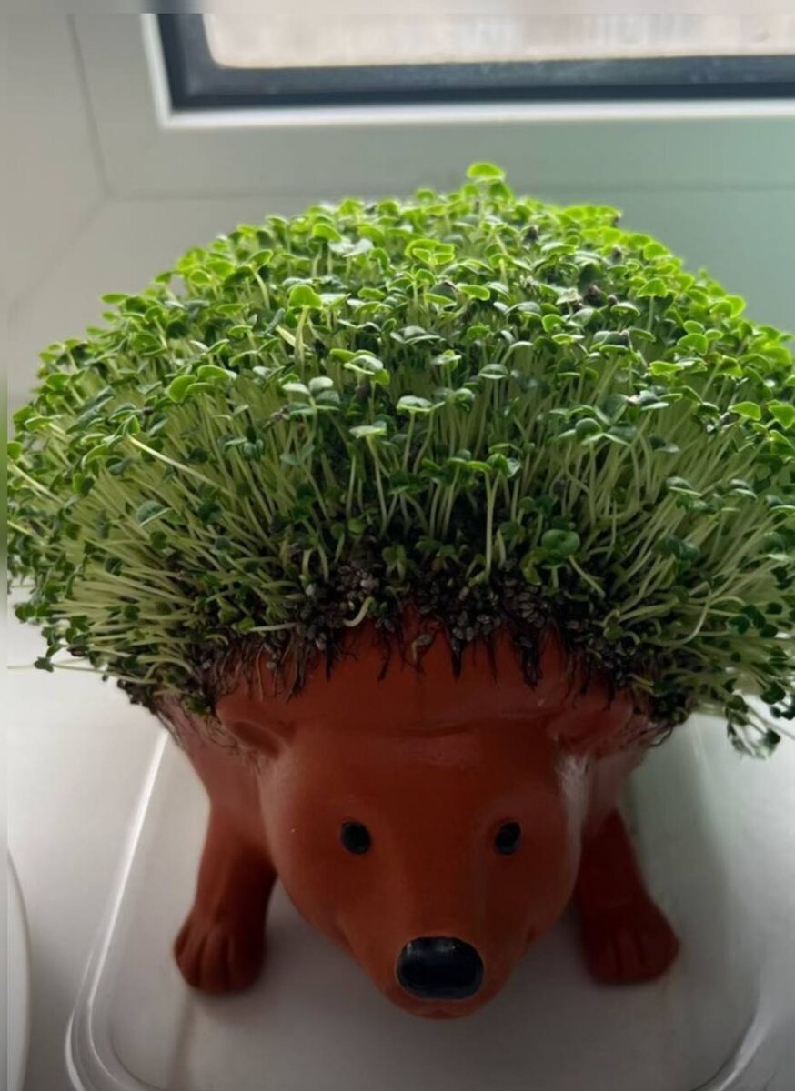Это что за чудеса такие! ⭐️ Суть видео: фигурка покрывается семенами чиа, которые при прорастании микрозелени напоминают шерсть Такую же не нашла, но на Озоне есть симпатичный ЧИА ёжик 🦔 за 987₽. Фото из отзывов, кстати Микрозелень съедобная, фигурка - нет 😌