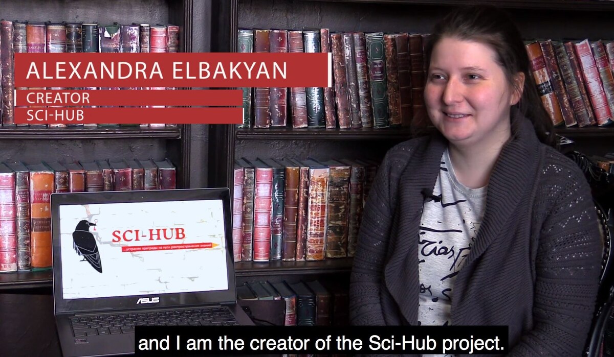 Александра Элбакян — научный деятель родом из Казахстана. В 2009 году, в процессе работы над дипломом в вузе, столкнулась с платным доступом к большинству необходимых ей статей в научных журналах. Оплата обычно составляла от 30 долларов за статью, которых ей требовалось прочесть не меньше сотни. А поскольку у неё не было нужной суммы, она их скачивала обходными путями.