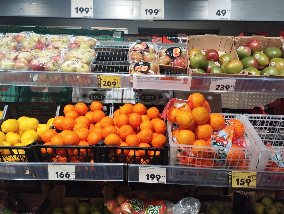 Пока еще цена на бананы сохранилась - 159 рублей, правда, как я заметила, у них во всех практически магазинах одинаковая стоимость, не знаю можно ли тогда считать ее акционной. Что-то "Пятерочка" оказалась щедрой на скидки на цитрусовые: грейпфруты по 129 рублей за кг (весьма недорого, не так ли?), мандарины Марокко - 299 рублей/кг, красные апельсины - 239 рублей (с ними мне не особо повезло, купила два, оба уже переспевшие).