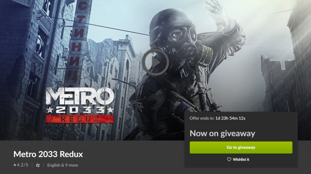 Халява: в GOG можно бесплатно забрать Metro 2033 Redux вы можете забрать даже с российского аккаунта