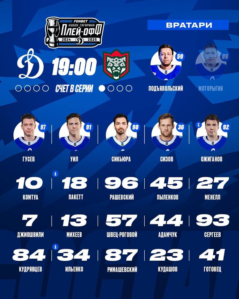 Идем на эксперименты. Ознакамливаемся с составами #ДинамоАкБарс Ровно 12 нападающих и 8 защитников сегодня в заявке. Готовец вместо Слепышева. Но самое главное изменение – в воротах Подъяпольский! Начало матча в 19:00. Включаем Матч ТВ, KHL, KHL Prime или смотрим по ссылке на Кинопоиске. Вперед, Динамо! Обязательно нужно сравнять счет в серии. Подписывайтесь на БуДсу