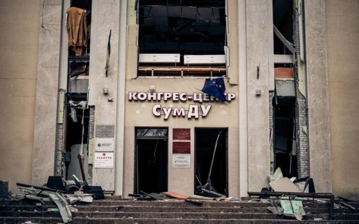 И через несколько дней, как нельзя кстати, произошел новый удар в Сумах. Одна из ракет попала в здание конгресс-центра Сумского государственного университета, где 117-я отдельная бригада территориальной обороны отмечала седьмую годовщину своего создания.