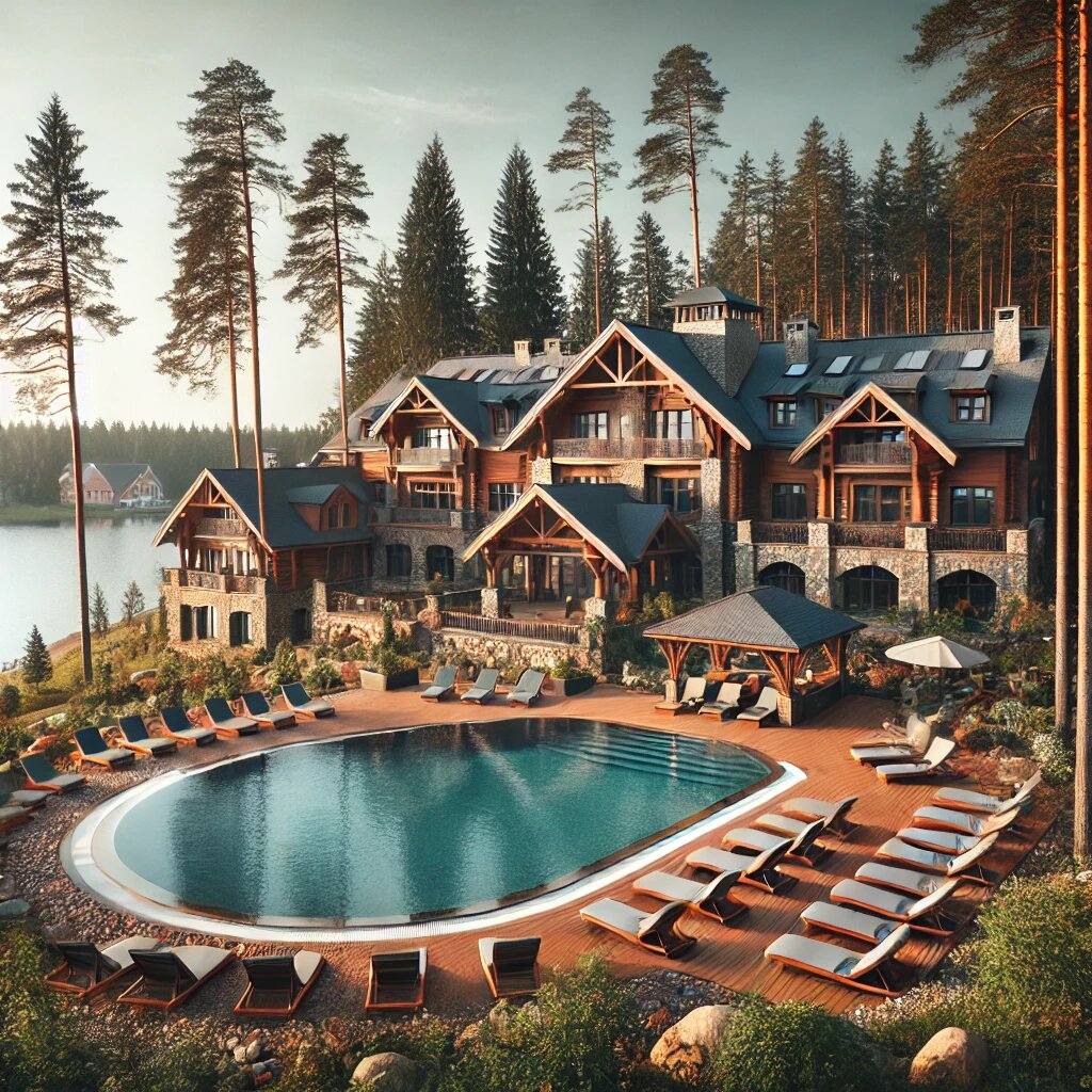 Лучше выбирать отели с крытым бассейном, детской зоной и анимацией. - Где в Ленобласти есть отели с бассейном и видом на озеро?