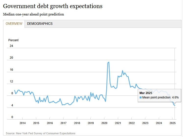 Самое интересное из последнего опроса потребителей [американский народ] ФРБ Нью-Йорка — это ожидания роста госдолга