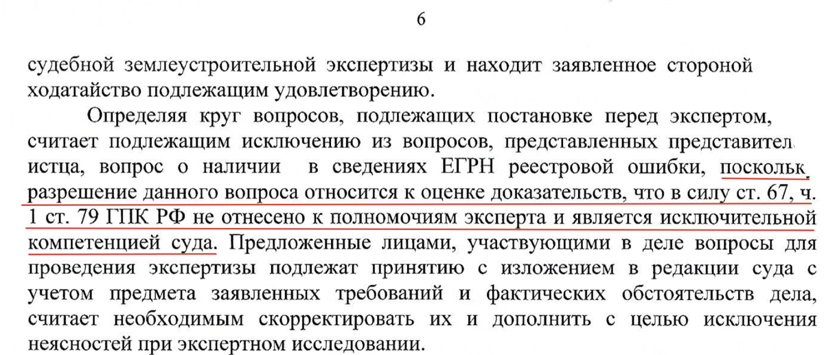 Один из редких примеров компетентности судьи при назначении экспертизы (выкопировка из определения о назначении экспертизы). Но, я бы ещё уточнил, что наличие реестровой ошибки в сведениях ЕГРН это не просто вопрос оценки доказательств. Это вопрос квалификации спорных отношений. Всегда негативно относился к непробиваемому желанию судей ставить перед экспертом вопрос про реестровую ошибку, а потом с каменным выражением лица переписывать в решение суда любую ерунду, которую сочинят в заключении. Землеустроительные эксперты это чаще всего кадастровые инженеры, которые реестровую ошибку склонны видеть вообще везде. Даже там, где её не может быть, в принципе. Моя позиция остаётся неизменной много лет - наличие или отсутствие реестровой ошибки это вопрос квалификации спора. Что является исключительной компетенцией и прерогативой суда. Это не вопрос экспертного исследования. Его нельзя делегировать лицу, не имеющему процессуальных полномочий делать суждения по сути спора и тем самым подменять
