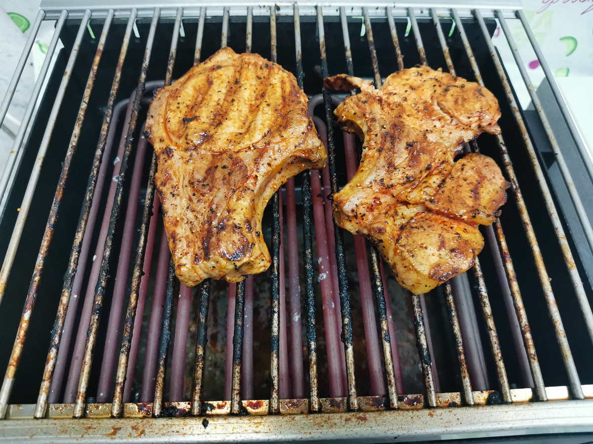 Ингредиенты: Свинина 350-400 грамм (один стейк) мякоть; Соевый соус 60 мл; Соль 0,5 ч. ложки; Масло растительное 50-60 мл; Перец черный (или смесь перцев) молотый 0,5 чайной ложки; Способ приготовления: Необходимо промыть свиную мякоть в воде комнатной температуры, в горячей воде мясо промывать нельзя, так как белок начнёт сворачиваться. По желанию можно приготовить мясо на кости. Стейк необходимо посолить и поперчить со всех сторон. В глубокую емкость необходимо вылить соевый соус и растительное масло. Затем выложить в ёмкость стейк и промариновать его в течение 1,5 часа при комнатной температуре. Подготовка мангала. Включить электрический мангал и подождать 4-5 минут пока нагревательные элементы полностью разогреются. Когда ТЭНы разогрелись, необходимо выложить на решётку стейк и обжаривать 7-10 минут в зависимости от толщины мяса. После истечения времени необходимо перевернуть стейк и жарить его такое же количество времени. После приготовления нужно дать мясу отдохнуть 10 минут н