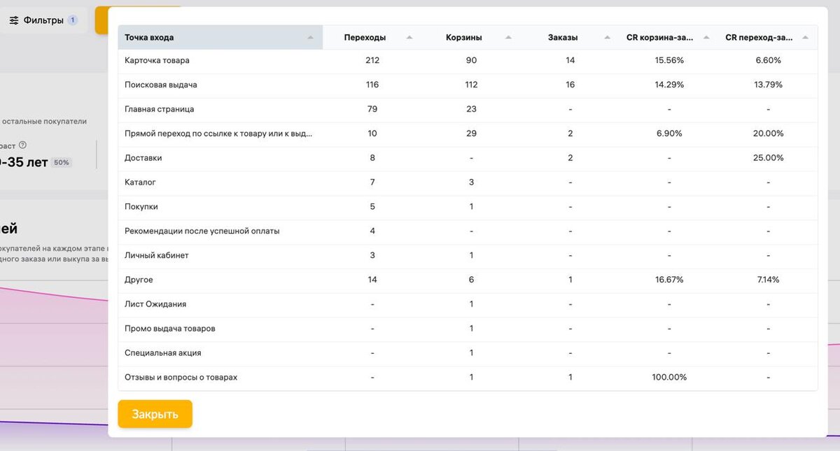 ☄️Отличная новость «Портрет покупателя» тепреь можно фильтровать по конкретному артикулу Теперь можно посмотреть сколько конкретно заказов пришло по каждой точке входа