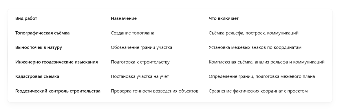 При планировании строительства, покупке участка или внесении изменений в кадастровые данные без геодезической съёмки не обойтись. Но сколько она стоит? От чего зависит цена? Какие нюансы стоит учесть жителям Москвы и области? В этой статье мы подробно разберём стоимость геодезических изысканий, основные виды услуг и как выбрать надёжного подрядчика. Также рассмотрим, зачем нужна съёмка и как не переплатить, получив при этом качественный результат. Геодезическая съёмка — это процесс измерения объектов на местности с целью получения точных координат и высот. Результаты оформляются в виде чертежей, планов и 3D-моделей. Эти данные необходимы для: Стоимость формируется на основе нескольких факторов: 💡 Важно: Уточняйте, входит ли в цену подготовка документации и согласование с Росреестром. 📌 В Москве высокая конкуренция — цены чуть ниже. В области затраты на логистику увеличивают итоговую сумму. Некачественная съёмка или ошибки в координатах могут привести к: ✅ Поэтому важно заказывать усл