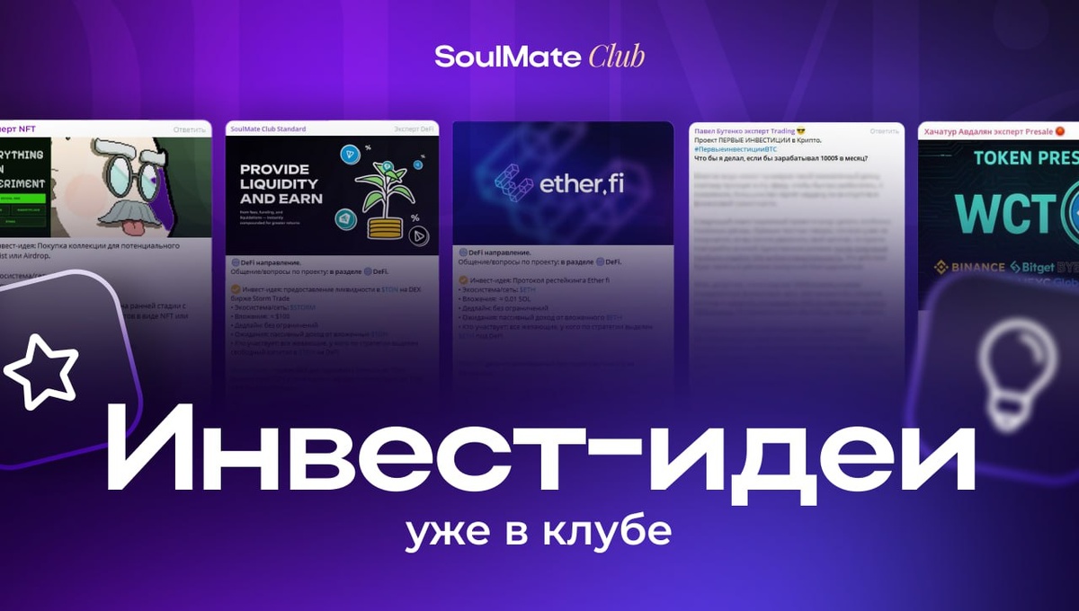 💼 Инвест-идеи уже в клубе. SoulMate Club 🔥 готов встречать первых участников! Мы активно наполняем закрытый клуб контентом, и уже сейчас внутри — первая порция инвестиционных идей, стратегий и аналитики, которые можно применять здесь и сейчас. 📈 Что вас ждёт внутри клуба? — Проверенные инвестиционные стратегии от экспертов — Готовые трейд-сигналы и рекомендации — Аналитика рынка в реальном времени — Подробные разборы проектов и IDO/ICO — Криптопортфели с реальными результатами — Ответы на ваши вопросы от профи — Помощь в применении всех инструментов — И главное — живое сообщество, которое не только обсуждает, но и действует — Это не все, чуть позже мы развернем подробное описание клуба и разных пакетов участия😎 ✨ Мы строим не просто крипто-комьюнити, а пространство силы и эффективности, где каждый может уверенно расти как инвестор. Завтра первые участники из предзаписи получат доступ в SoulMate Club, чтобы первыми начать использовать все инструменты и помощь клуба. Мы не прост
