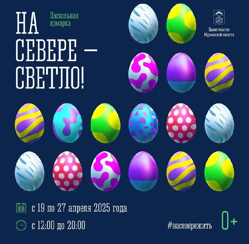 😙Северян зовут на ярмарку «На Севере – светло!» Она будет открыта с 19 по 27 апреля в Мурманске на улице Воровского. Время работы: с 12 до 20 часов. Что ждёт гостей? ✔ Торговые ряды с сувенирами, украшениями к праздничному столу и пасхальными подарочными наборами. ✔ Фуд-корт с блюдами арктической кухни, свежей выпечкой, безалкогольными напитками и очень вкусными куличами ручной работы. ✔ Творческие мастер-классы и яркая развлекательная программа для юных северян. ✔ Почтовый домик, из которого можно бесплатно отправить тематическую открытку в любой уголок России.