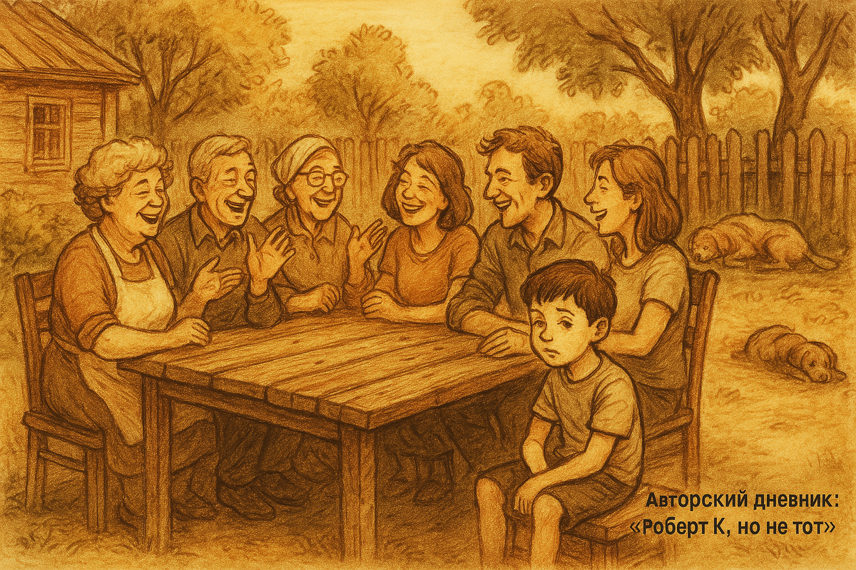 Слишком много. Настолько, что иногда я чувствовал себя лишним элементом какого-то большого механизма. Всё вращалось, жило, варилось — но без моего участия. Бабушки, дяди, тёти, кузены, дальние братья. Большая семья. Громкая, непростая, иногда агрессивная. Но всё равно — моя. …все они были большими людьми, когда собирались вместе. Пили домашнее вино, громко разговаривали, вспоминали войну. Один был прапорщиком, другой — шофёром, третий — молчун с военным взглядом. Все — как будто герои других жизней, не моей. Меня не замечали. И я не знал, нужно ли вообще, чтобы замечали. Когда ты ребёнок в большой семье, тебя могут любить, кормить, говорить «будь молодцом» — но при этом не видеть тебя как личность. Я был тихим. Замечал всё. Молчал. И мне часто казалось, что я просто присутствую в чьей-то пьесе, где нет моей роли. Гриша — сын другой матери. Старше меня. Сложный, мрачный, резкий. Его жизнь складывалась плохо. Отсутствие постоянной семьи, побеги