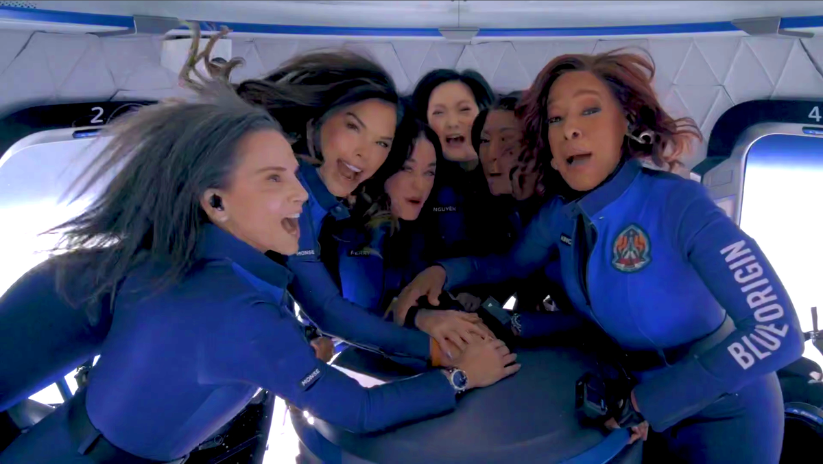Итак в чём соль? Шесть абсолютно неподготовленных девушек, не прошедшие многолетней физической и технической подготовок, отправляются в"космос", на самом деле в верхние слои атмосферы Земли, на американской ракете Blue Origin. Ракета взлетела в 9.30, поднялась на высоту 105 км, пробыла в полете 10 минут и приземлилась почти на ту же площадку откуда взлетала в 3 км (запомним это важно).