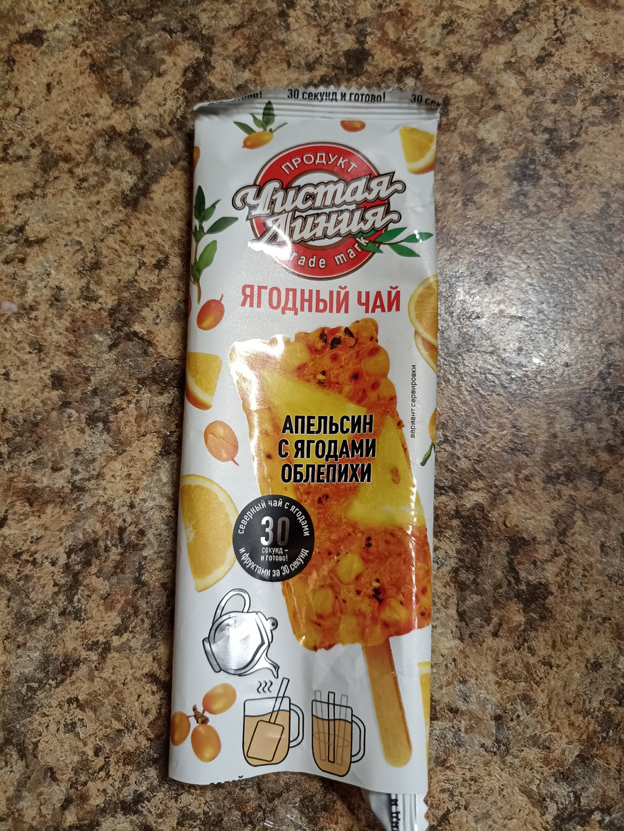 Если честно я покупала мороженное и ни о чем другом не думала,и даже не читала этикетку, думала что взяла просто фруктовое мороженое , но только откусив, подумала фу какая бяка. На вкус это совсем не было похоже на нормальное мороженое ,слишком какой то очень насыщенный вкус. Откусила и отложила, подумав что может растаевшее будет более менее съедобное. Но потом вдруг пришла мысль, что возможно ввиде чая будет вкуснее и вскипятив чайник я просто залила это типа мороженное кипятком в кружке, а потом попробовав, не поверила ,что это прям натуральный вкусный напиток с насыщенным вкусом облепихи и апельсина, для меня в меру сладкий с кислинкой. И даже не додумалась сфоткать ,с таким наслаждением и достаточно быстро выпила всю кружку. Но самое интересное случилось потом, когда я достала обертку ( не буду писать откуда, думаю и так можно догадаться;) и стала читать её:)) Прям аж смешно стало, что я сама догадалась лишь откусив сделать из этого напиток, не читая обёртку . Так что, рекоменду