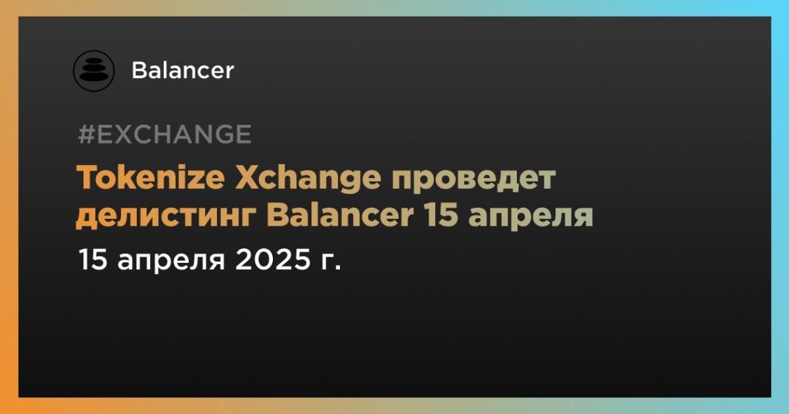 Tokenize Xchange проведет делистинг Balancer 15 апреля