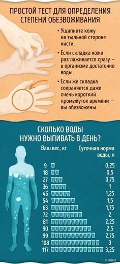 Сколько пить воды💦 ежедневно? Рекомендуемая норма потребления воды индивидуальна и зависит от многих факторов: возраста, веса, уровня физической активности, климата и общего здоровья. В среднем человеку достаточно потреблять около 2–3 литров чистой питьевой воды в сутки. Но ориентируйтесь на личные ощущения и состояние своего организма. Количество воды, которое рекомендуется выпивать ежедневно, индивидуально и зависит от нескольких факторов: Основные рекомендации: - Для взрослого мужчины среднего телосложения: около 3 литров (12 стаканов). - Для взрослой женщины среднего телосложения: примерно 2,2 литра (9 стаканов). Эти нормы включают воду, поступающую не только в чистом виде, но и вместе с напитками (чай, кофе, соки), а также пищей (например, супы). Что учитывать при расчете индивидуальной потребности: 1️⃣ Физическая активность. Интенсивные тренировки увеличивают потребность в воде, поскольку жидкость активно выводится с потом. 2️⃣ Климатические условия. Жара и сухость воздуха п