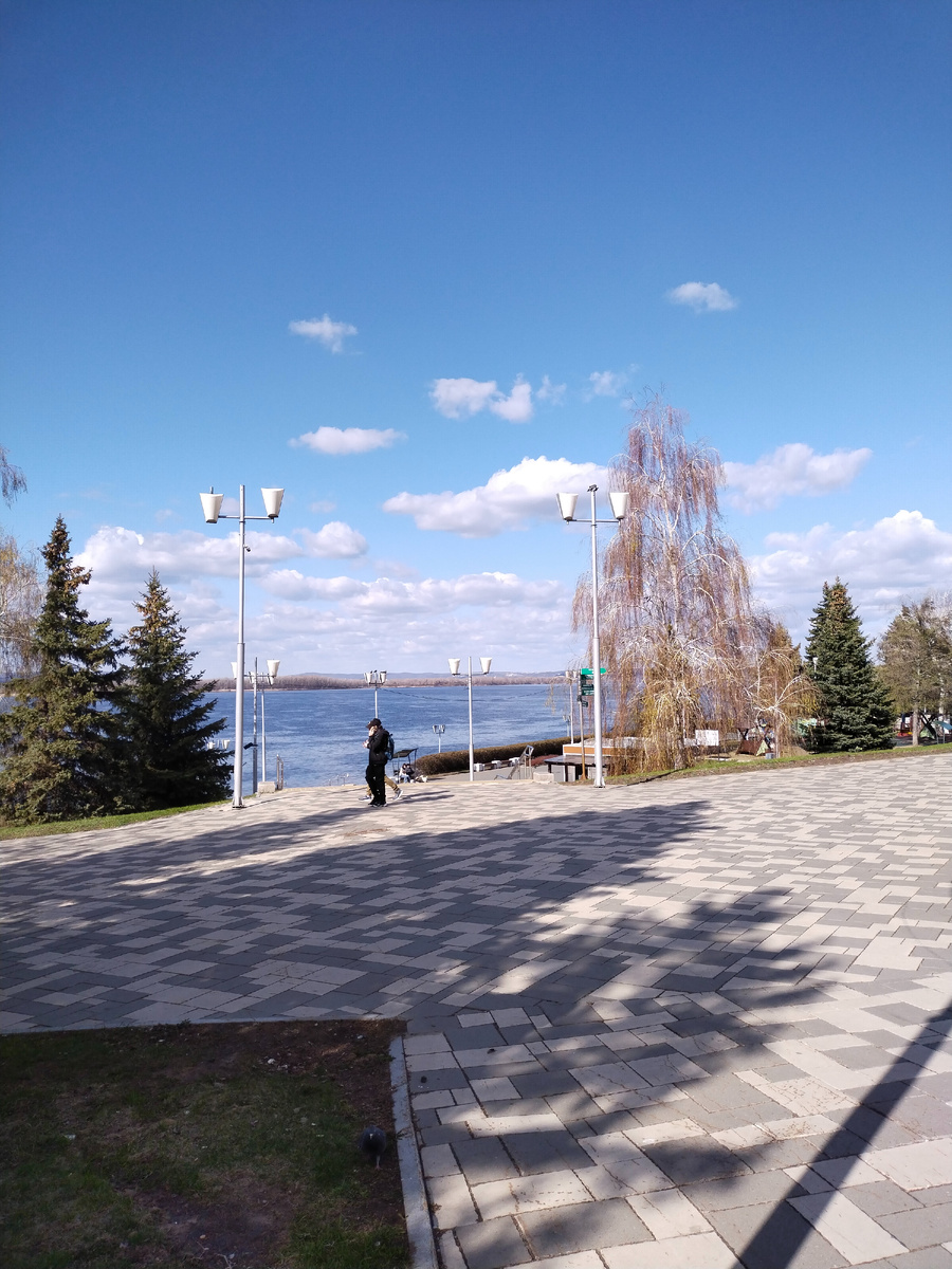 Помните мышонка из советского мультика, который стоял на пне и пел: "Какой чудесный день!" Вот сегодня тот мышонок - я. Какой чудесный день!!! А почему? А потому что сегодня я наконец-то познакомилась вживую, а не по переписке с дивной Дашей Тихоновой. Той самой, которая доехала до нашей Самары из самого Салехарда! Доехала, чтобы первым делом откликнуться на мой призыв и попозировать для рассказа о нашей прогулке на фоне Идущей Клио, нашей местной достопримечательности. 😁 Даша грамотно выбрала отель - в трёх шагах от набережной. По-моему, замечательно проснуться утром и прийти хоть вот сюда глядеть на Волгу. Тут же целый амфитеатр, что вы! Какой простор, правда? Если бы не остров посреди реки, вообще бы ширь была необъятная! И Ладья наша тут рядышком - один из символов Самары. Как давно я живу, однако. Я ещё помню время, когда не было ни Ладьи, которая появилась тут в 1986-м, к 400-летию города, ни тем более высотки на дальнем плане, она вообще новострой. Совсем недавно появился и Соф