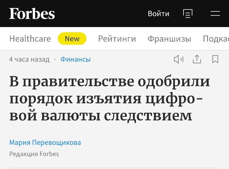 ⚡️Крипту смогут ИЗЫМАТЬ в России: только что одобрили закон, по которому монеты на «холодных кошельках» признали имуществом — могут
