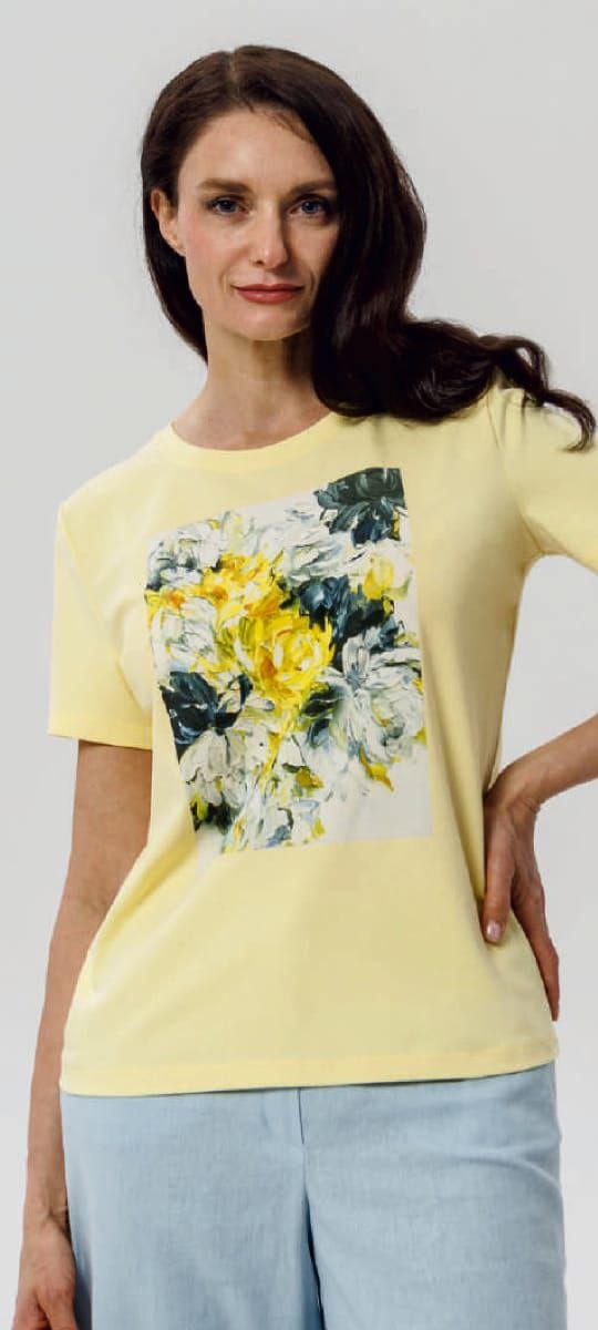 Солнечная футболка с дизайнерским принтом. Размеры 44-52.
