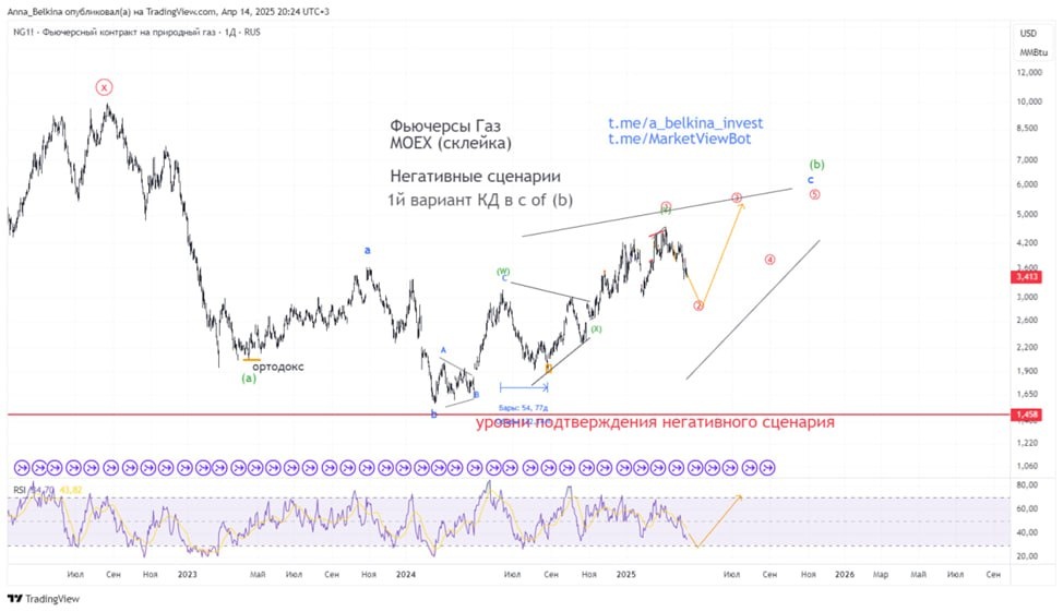 #Gas Газ отрабатывает дневной RSI в область перепроданности. По гипотезам - после завершения снижения смотрю на газ в лонг = это будет волна КД, либо субволна треугольника. https://dzen.ru/media/id/65b8789ff12bfe0796a26941/gas-v-zavisimosti-ot-togo-kakoi-scenarii-realizuetsia-na-starshih-stepeniah-67e4fb35eb34257492e31301 Не является ИИР