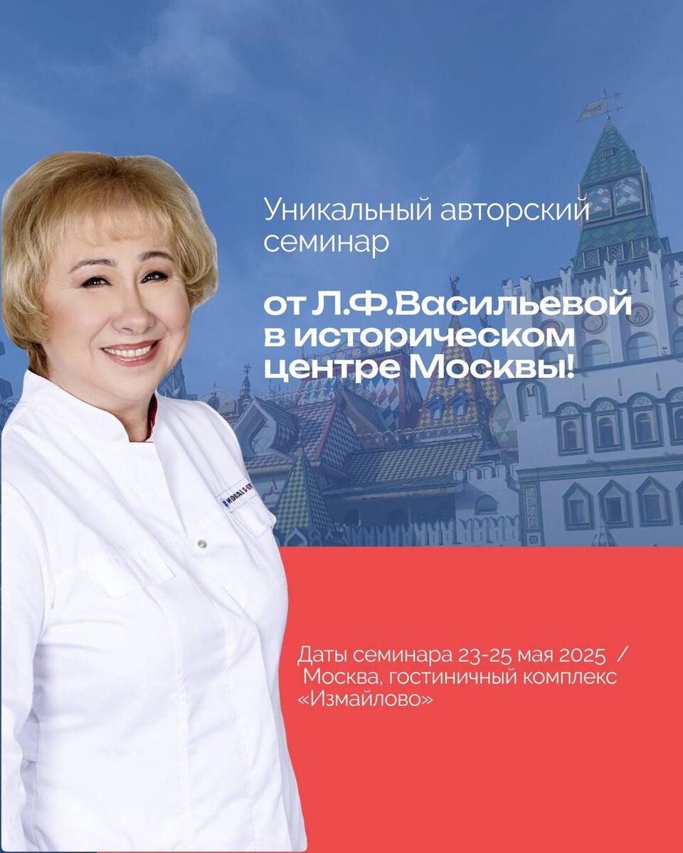 23–25 мая 2025 года – авторский семинар в конгресс центре "ВЕГА Измайлово" Приглашаем всех желающих на уникальный очный семинар, который пройдет в Измайловском Кремле – одном из самых колоритных исторических мест столицы. 🔥 Три дня практики с основателем прикладной кинезиологии в России – Васильевой Людмилой Федоровной!🔥 Почему этот семинар нельзя пропустить? 🔹 Большинство специалистов оценивают сосудистую систему поверхностно, ориентируясь лишь на стандартные показатели. Однако истинные причины дисбалансов часто остаются вне зоны традиционных методик. 🔹 Этот семинар откроет доступ к эксклюзивным знаниям и практикам, которых нет в книгах и открытых источниках. 🔹 Вы освоите авторскую методику диагностики и коррекции сосудистых нарушений, проверенную десятилетиями клинической практики. 🎁 Бонус для участников: скидка 15% на проживание в гостинице Измайлово ВЕГА по промокоду KINEZIO (ввести строчными буквами в поле «есть промокод» при бронировании). 📩 Забронировать участие: https