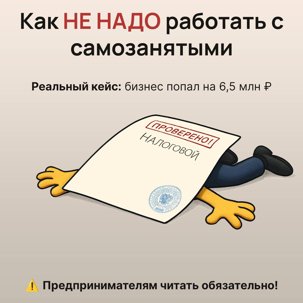 РАЗБОР РЕАЛЬНОГО ДЕЛА Всё моё инфополе твердит: “Осторожно с самозанятыми, нельзя переводить сотрудников на ИП”. И вроде бы все предприниматели это знают, но продолжают так делать ради экономии на налогах и взносах.