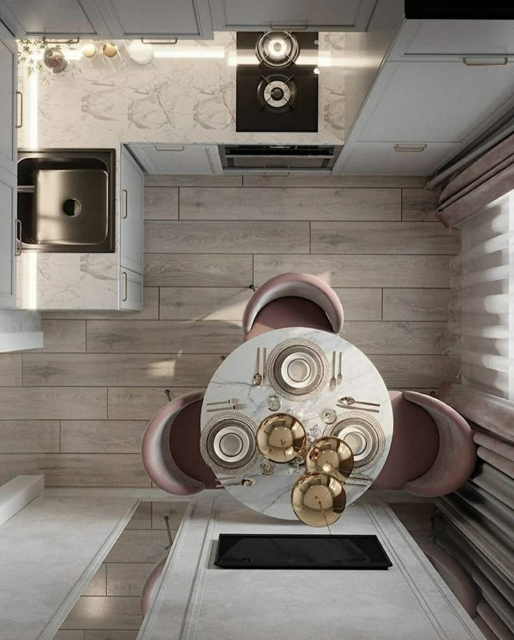 Когда площадь кухни ближе к кладовке, чем к мечте из Pinterest, хочется махнуть рукой: «Ладно, что есть, то и будет». Но не спешите сдаваться — даже на 5–6 квадратах можно сделать интерьер, который вызывает восторг. И всё начинается со сочетания фасадов, фартука, столешницы и пола.