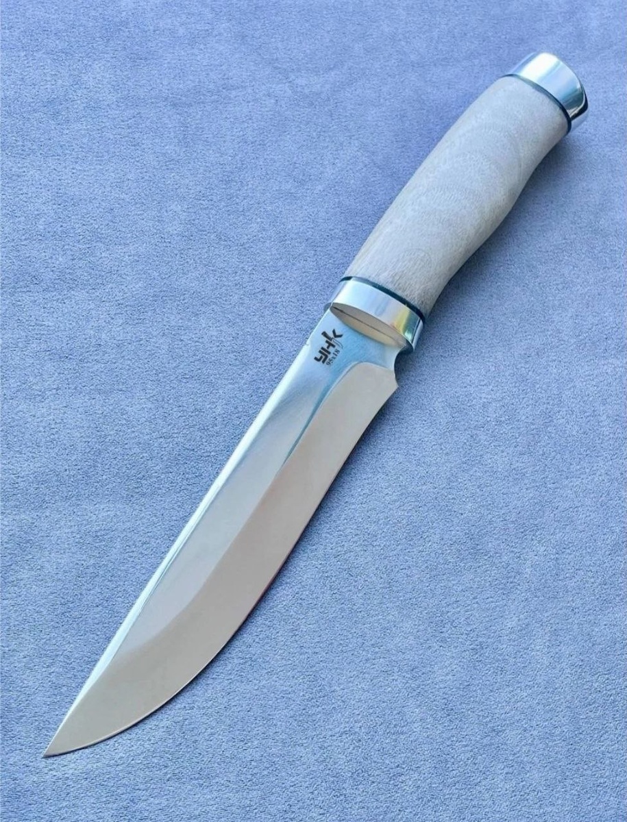 ⚔️На фото нож Стрелец из стали 95х18, рукоять орех, гарда и тыльник алюминий. ⚙️Клинок имеет классическую форму с плавным изгибом режущей кромки, обеспечивая отличный баланс между проникающей способностью и возможностью работы по твердым материалам. Зеркальная полировка придаёт ножу премиальный вид и защищает от ржавчины. Нож любителям простого и практичного 😉 Укомплектован и готов а продаже 👍 В комплекте: 1. Нож Стрелец 2. Кожаные ножны 3. Паспорт изделия 4. Сертификат соответствия 5. Фирменный текстильный кейс