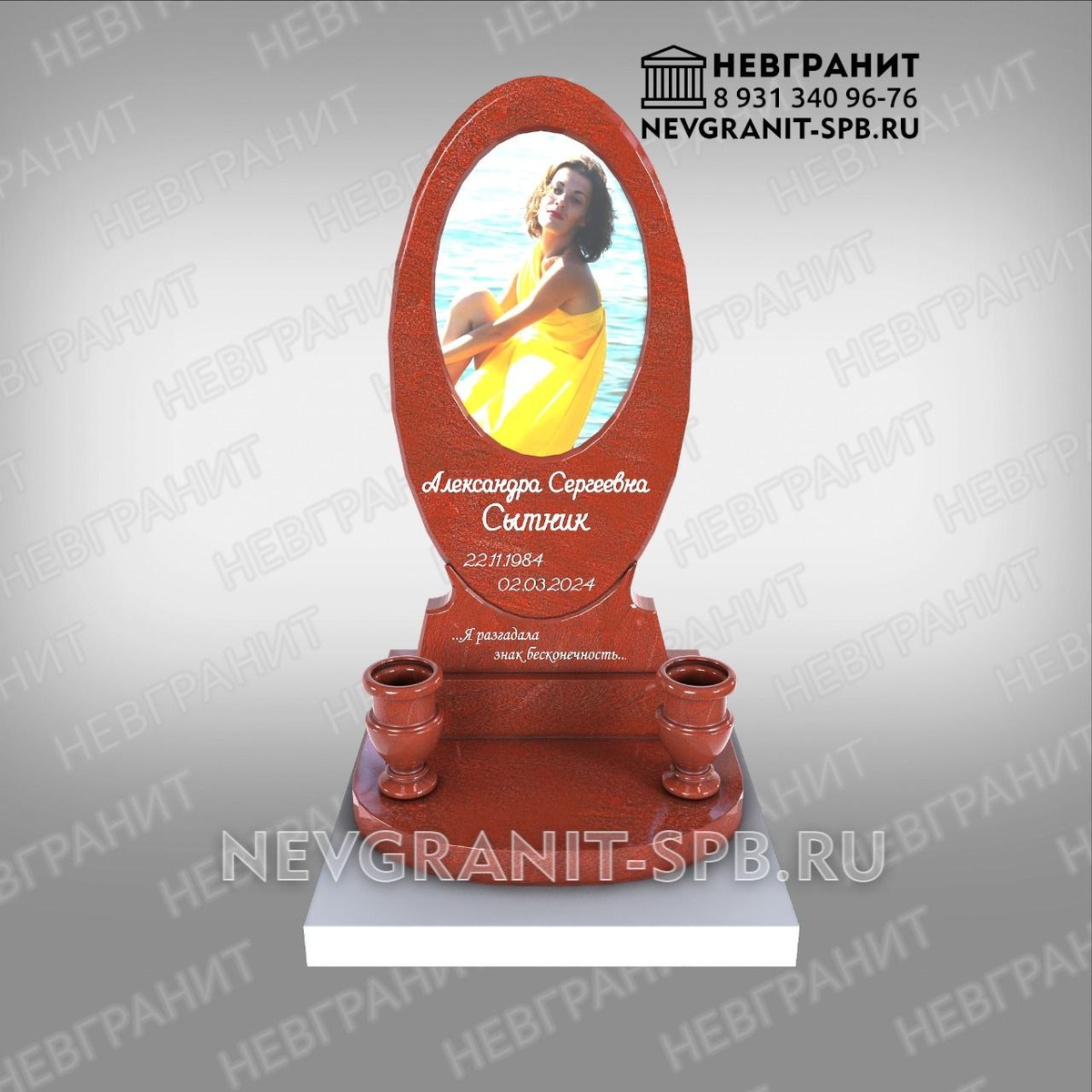 Гранитный памяиник с поретретом цветным. Www.nevgranit-spb.ru