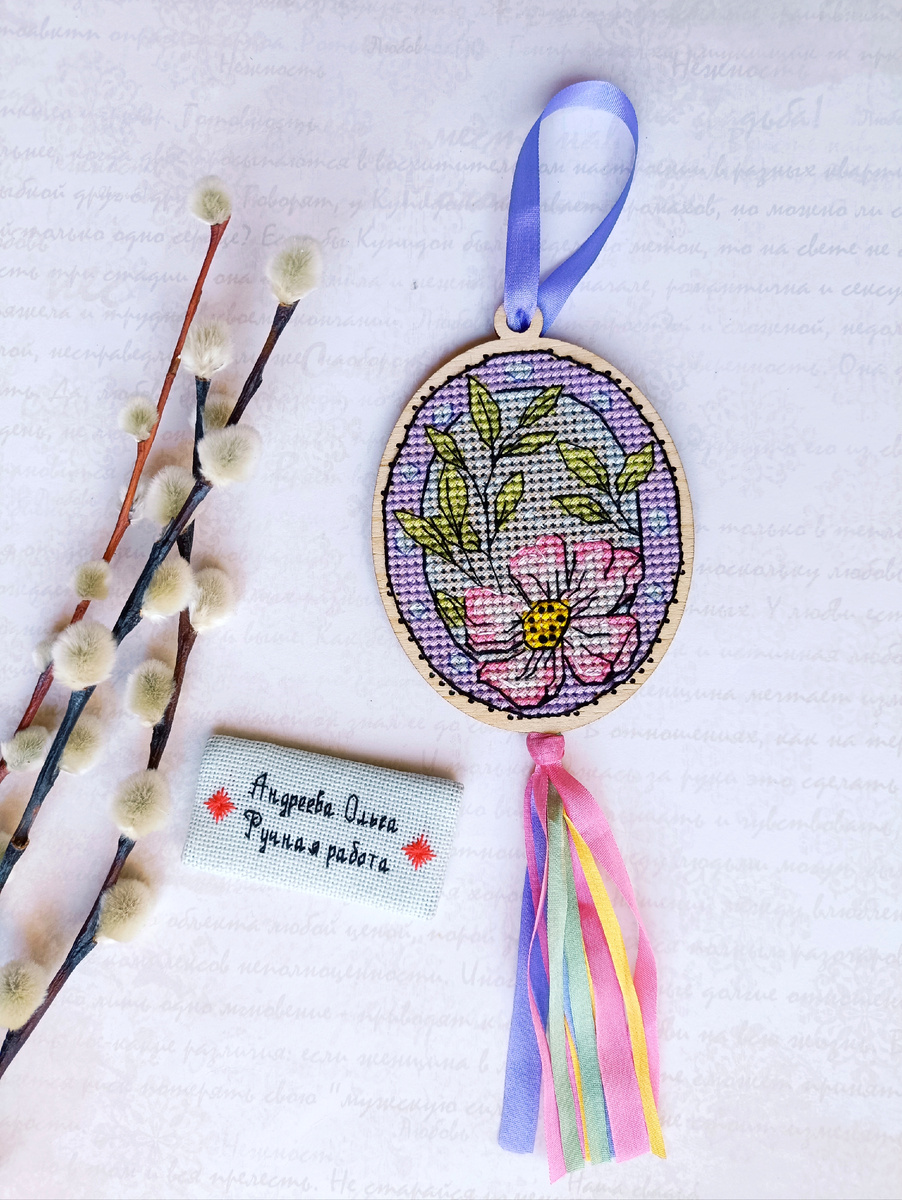 Ещё одно пасхальное яичко вышито на деревянной основе. Получилось очень нежно и мило. Обожаю эти оттенки. Добавила ленточек для красоты ☺️