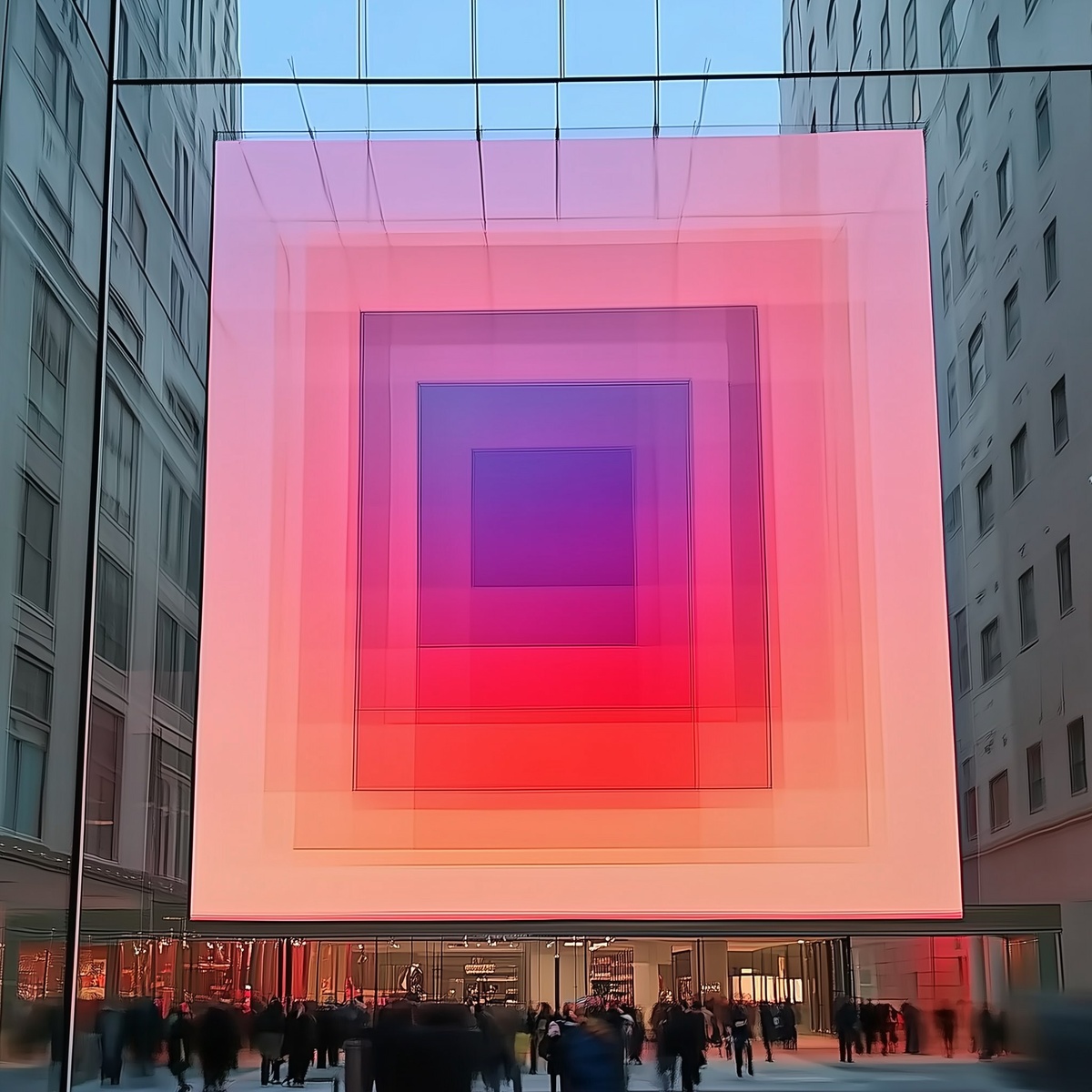 Создано на основе запроса: exterior of UNIQLO new york flagship store in New York with outfitted with layred concenteric giant square gradient art from sculpture the MOMA, vinyl overlay on building, rafael rafael rozendaal ar16:9 --- Автоперевод: Экстерьер в флагманском магазине Uniqlo New York в Нью -Йорке с экипировкой с мирянными концентрическими гигантскими квадратными градиентными искусствами из скульптуры The Moma, виниловое наложение на здание, Рафаэль Рафаэль Розендаал AR16: 9: 9 Круто вышло? 🤔 https://dzen.ru/id/65c0c65c86e4f837c27b24d7 #ИИ #AI #нейросеть #midjourney #art