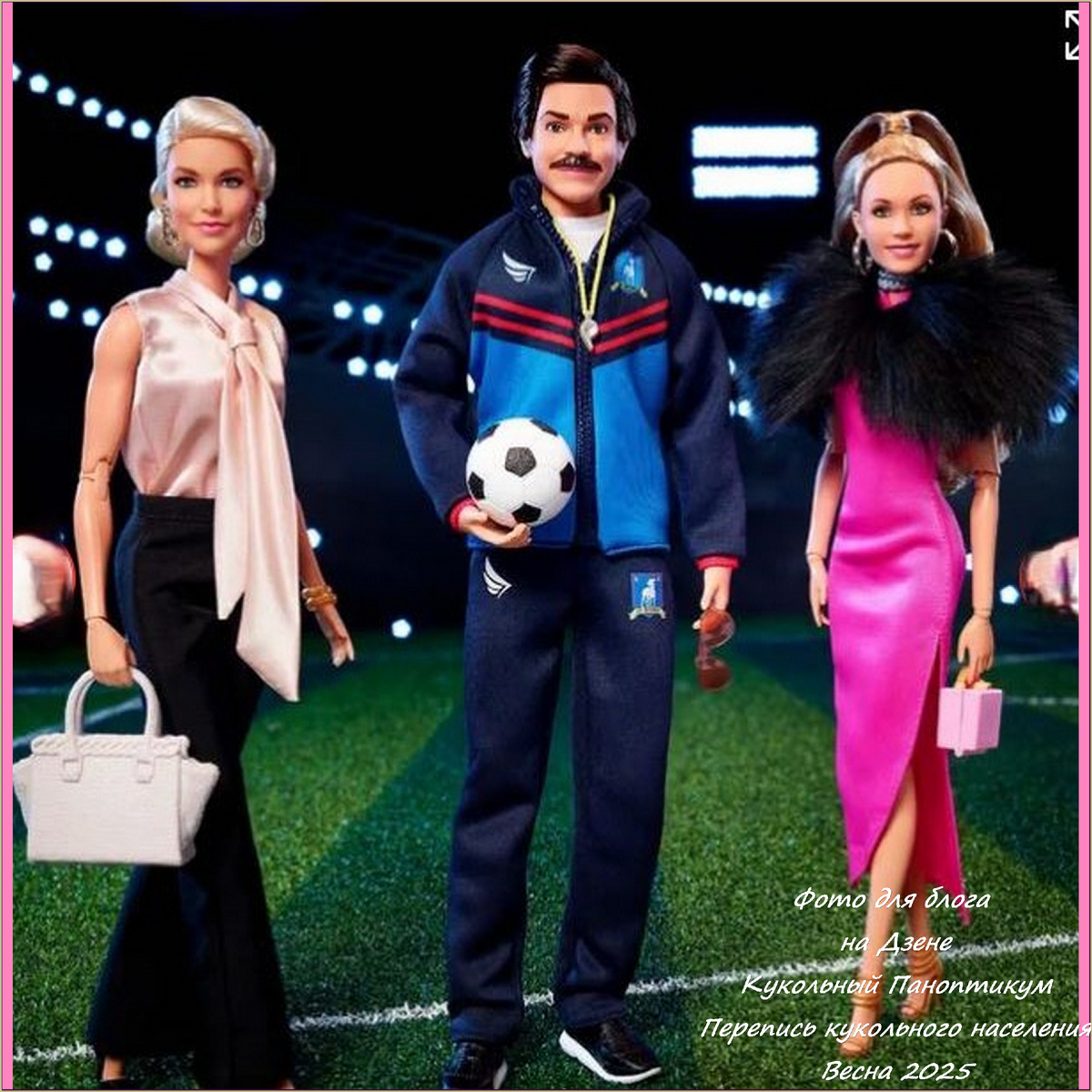 Здравствуйте, дорогие зрители и читатели! Продолжаю перепись КуклоНаселения моего Кукольного Паноптикума с завидной регулярностью. Кукла Кили Джонс от Mattel Barbie празднует выход хита телесериала "Тед Лассо" выпуском коллекционной куклы, вдохновленной профессионалом в области PR, Кили Джонс. В коллекции представлены Тед Лассо (Джейсон Судейкис), Ребекка Уолтон (Ханна Уоддингем) и Кили Джонс (Джуно Темпл). Тед Лассо из Джейсона Судейкиса появляется в синем спортивном костюме AFC Richmond, солнцезащитных очках-авиаторах и кроссовках, держа в руках футбольный мяч и свисток тренера. Лучше всего то, что у куклы мгновенно узнаваемые усы и прическа Джейсона. Памятная коробка воссоздает раздевалку AFC Richmond с табличкой "Believe" и ящиком для предложений. Ребекка Уэлтон - бизнесвумен и помимо этого является владелицей британского футбольного клуба AFC Richmond Football Club. Кукла Барби Ребекка Уэлтон готова к «перекусу с боссом». Хозяйка «Ричмонда» одета в розовую блузку и чёрные брюки, и