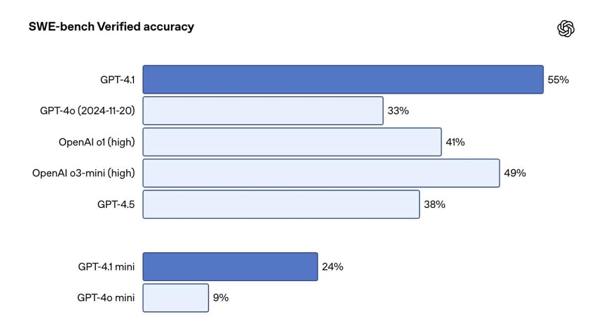 OpenAI запускает GPT-4.1: новое поколение AI-моделей OpenAI представила новое семейство моделей искусственного интеллекта — GPT-4.1, которые станут преемниками мультимодальной модели GPT-4o, запущенной в прошлом году. Во время прямой трансляции в понедельник компания объявила, что GPT-4.1 имеет значительно увеличенное контекстное окно и превосходит GPT-4o практически по всем параметрам, с особенно заметными улучшениями в программировании и следовании инструкциям. Модели тестировались под кодовыми названиями Quasar и Optimus. Семейство новых моделей GPT-4.1 — флагманская модель для сложных задач GPT-4.1 Mini — более доступная для разработчиков версия GPT-4.1 Nano — самая легкая, быстрая и дешевая модель OpenAI Ключевые усовершенствования: 🟡Огромное контекстное окно Все три модели могут обрабатывать до 1 миллиона токенов контекста (текст, изображения или видео). Это значительно больше, чем предел в 128 000 токенов у GPT-4o. Для сравнения, 1 миллион токенов — это более 8 полных коп