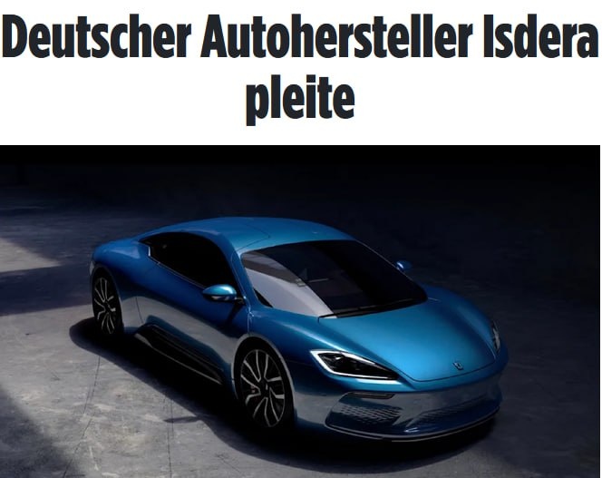 Немецкий производитель люксовых спортивных машин Isdera подал заявление о банкротстве, пишет Bild. 🟩 Подписаться | Прислать новость | Читать аналитику
