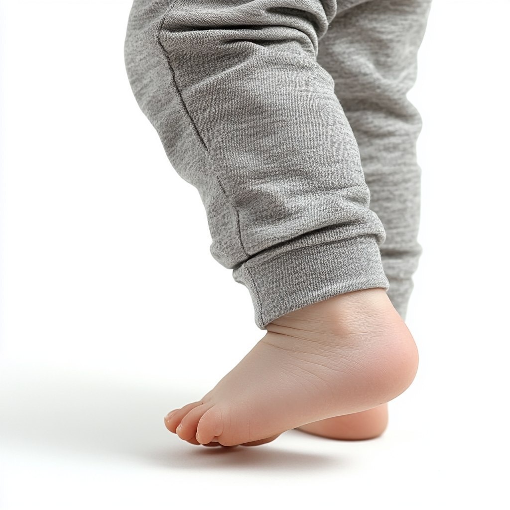 Создано на основе запроса: childs foot stepping barefoot wharing pants on white background