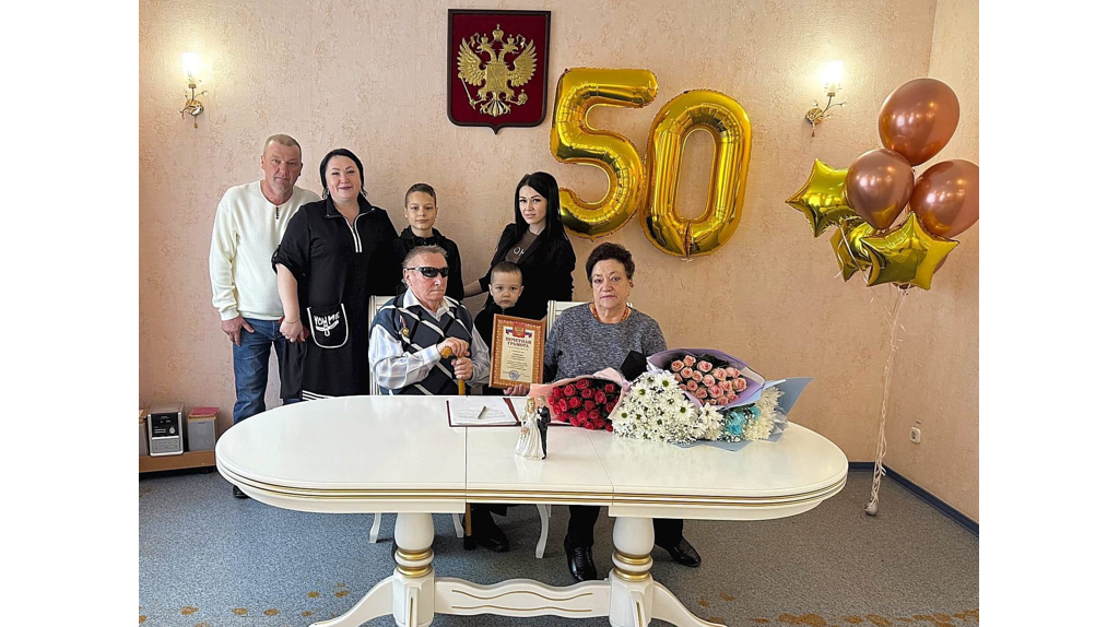 Сергей и Мария Ноздрачёвы из Дятьковского района Брянской области отметили золотую свадьбу. Они прожили вместе 50 лет. Чествование пары провела начальник отдела ЗАГС Оксана Стаськова: звучал Марш Мендельсона, супруги оставили свои подписи в Книге почетных юбиляров. От администрации района на торжестве присутствовала Лариса Макласова, которая вручила Ноздрачёвым Почётную грамоту. Сергей и Мария соединили свои судьбы и зарегистрировали брак в День космонавтики. У супругов есть главное богатство - семья дочери, внучка и внук, а также двое правнуков. Супруги Ноздрачёвы из Дятьковского района отметили золотой юбилей семейной жизни