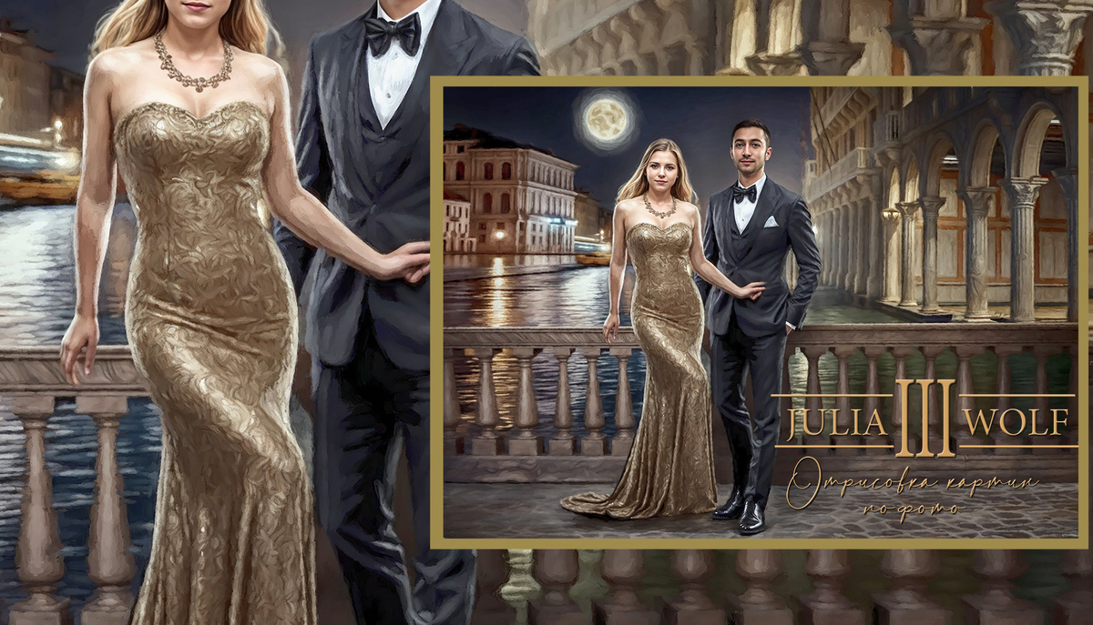 В День свиданий под Луной мир словно замирает в ожидании чего-то волшебного. Воздух наполнен предвкушением и нежностью, а мерцающий свет луны озаряет лица влюбленных, придавая им особенное очарование. В такие моменты хочется забыть обо всем на свете и просто наслаждаться компанией близкого человека, утопая в романтической атмосфере. И пусть картина этого вечера навсегда останется в вашей памяти, написанная с любовью Джулией, вашей художницей. Ссылка на портрет под заказ в технике классическая масляная живопись здесь: https://vk.com/market/product/tsifrovoy-portret-po-fotografii-v-stile-quotmaslyanaya-zhivopisquot-vlyublennye-225891091-8521258