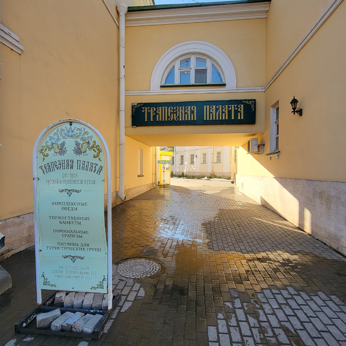 Планируя поездку в Сергиев Посад в Вербное Воскресенье, в качестве места для обеда выбирал между расположенными совсем рядом друг с другом рестораном «Гостевая изба» и «Трапезная Палата». После некоторых раздумий и под впечатлением от посещения Музея христианского искусства «Церковно-археологический кабинет» Московской духовной академии на территории Троице-Сергиевой Лавры, выбор был сделан в пользу «Трапезной Палаты». Почему, скоро станет понятно.