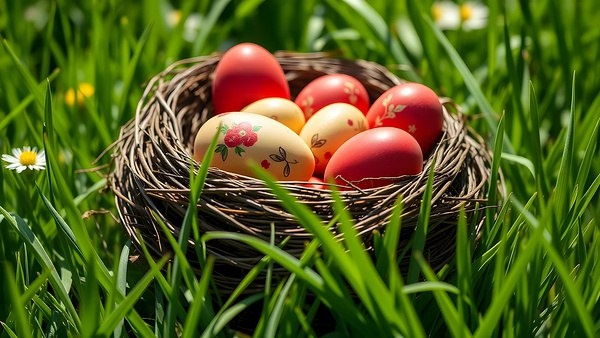 #лори #lori #крашеные #яйца #пасхальная #корзина #трава #весенняя #композиция #природный #фон #пасхальные #традиции #праздничный #декор