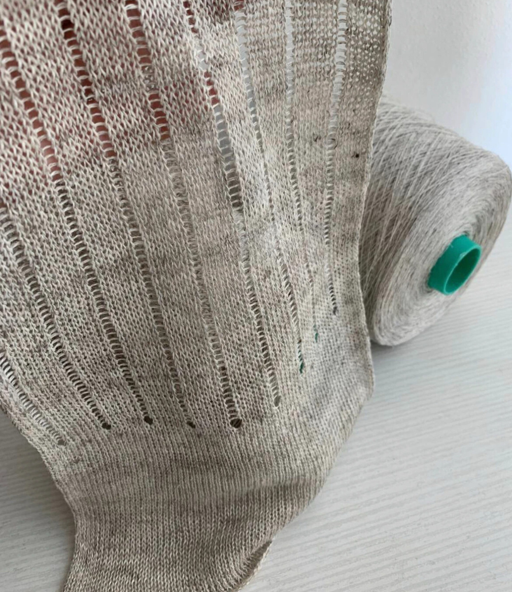 1. Лён обязательно вязать поплотнее. Материал изначально жесткий, он спицу так не «обнимает», как любая другая пряжа. Поэтому петля всегда больше, чем диаметр спицы.