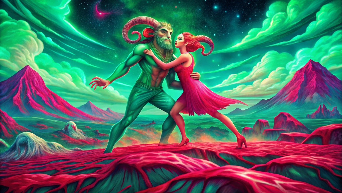 Они познакомились на вечеринке. Он (Овен) разбил бокал, делая тост. Она (Лев) рассмеялась и сказала: «Ты — дурак, но мой дурак». Через месяц они сняли совместный TikTok, через два разругались из-за того, кто будет вести блог. Через три помирились, потому что без него/неё было скучно.