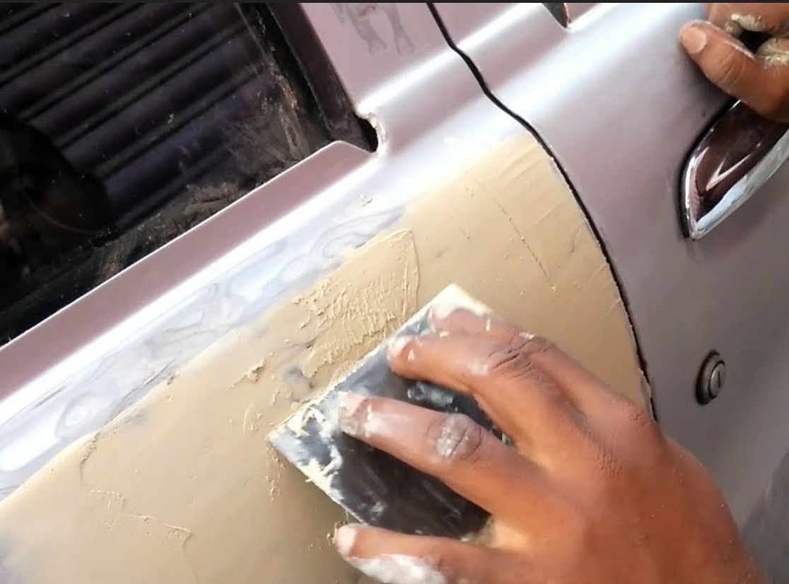 — наносить шпатлевку надо на очищенную и выпрямленную поверхность от вмятин;